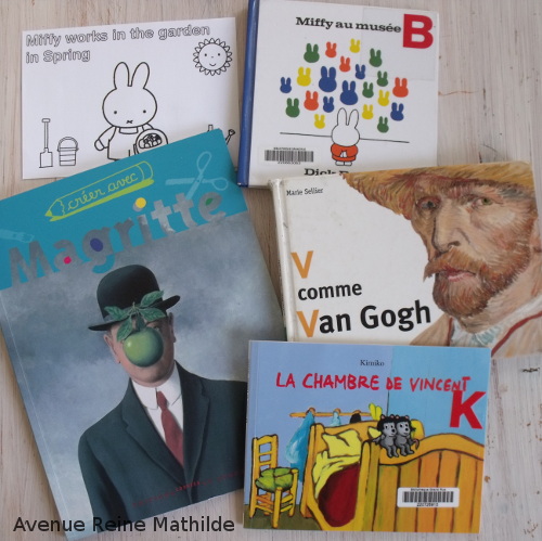 À croire que le livre de Miffy a été construit en clin d’oeil à Magritte qui lui est belge. Un grand musée lui est dédié à Bruxelles que Nine veut absolument voir. Nous avons en effet réalisé plusieurs activités du livre créer avec Magritte. Et ce qui lui a fait une plus forte impression, c’est le dessin animé Art with mati and Dada qui présente Magritte comme un homme mystérieux.